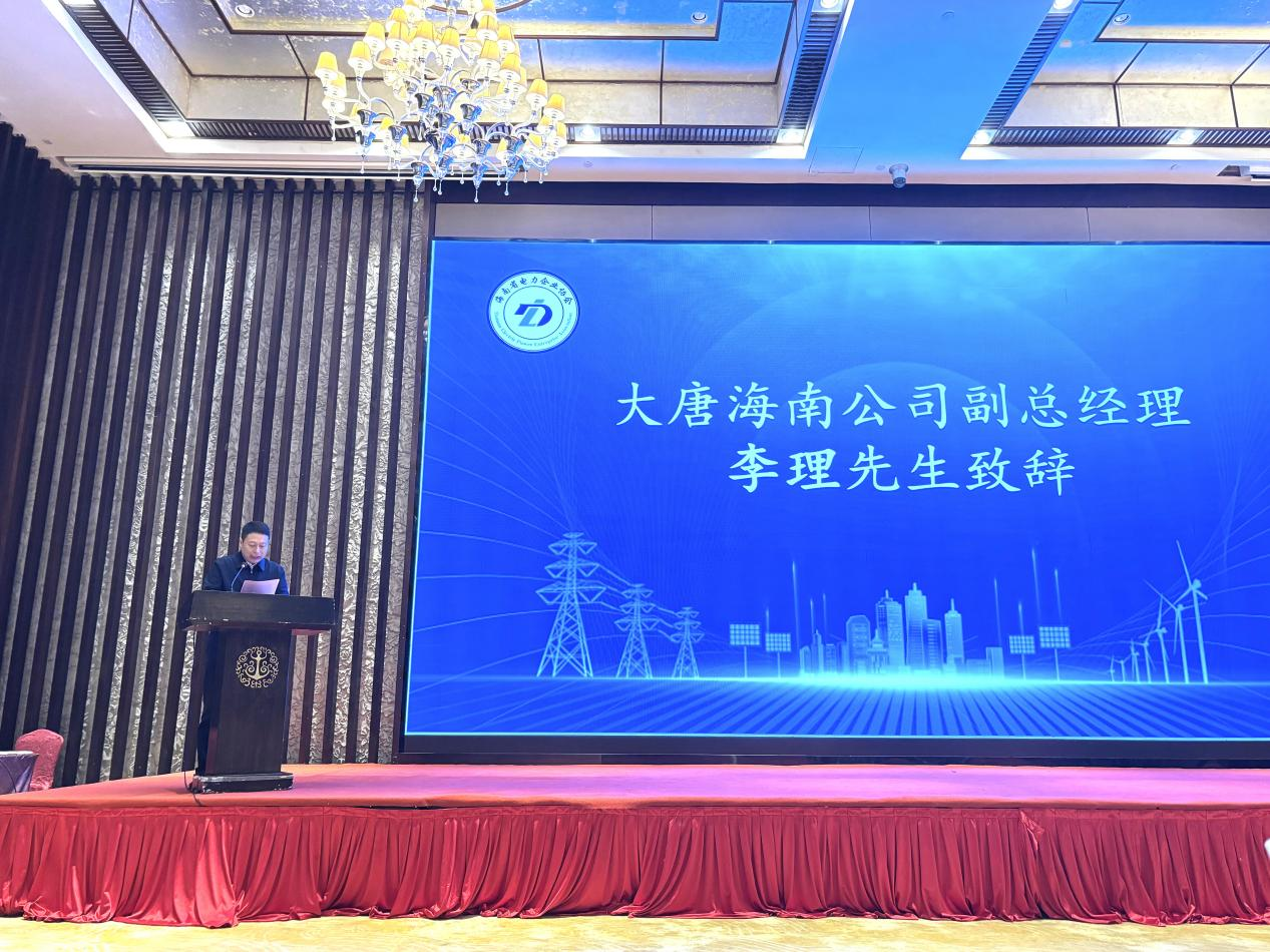 大唐海南能源开发有限公司副总经理李理出席并致辞。他表示,电力是海南自贸港建设和清洁能源岛建设的核心支撑,大唐海南深耕海南多年,已成为省内重要的清洁能源供应与保障力量。面向未来,大唐海南将持续加大清洁能源开发,前瞻布局氢能、零碳园区等新兴产业,强化关键技术攻关,依托协会平台深化行业协同合作,携手共筑安全清洁高效的电力生态,为海南自贸港和清洁能源岛建设贡献央企力量。